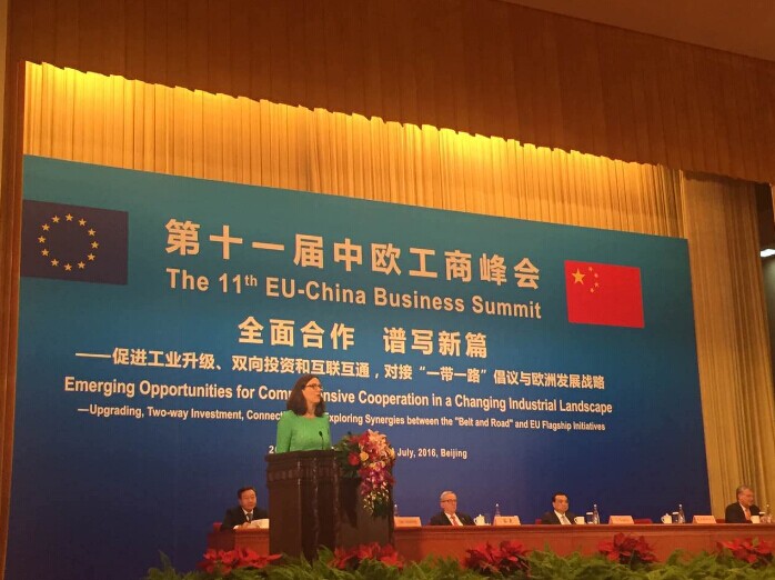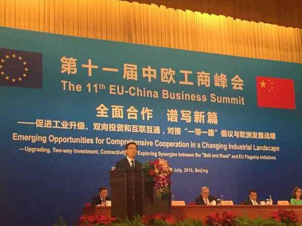 第十一屆中歐工商峰會由中國商務部、歐盟委員會主辦,中國國際貿易促進委員會、中國歐盟商會等機構聯合承辦。大會主題為:全面合作譜新篇——促進工業升級、雙向投資和互聯互通,對接“一帶一路”倡議與歐洲發展戰略。會議由中國貿促會會長姜增偉主持,中國歐盟商會主席伍德克、中國商務部部長高虎城、歐盟貿易委員馬爾姆斯特倫分別致辭,歐盟委員會主席容克發表演講。國家發改委主任徐紹史、工業和信息化部部長苗圩等相關部委領導到會。同時,由中國機械工業集團有限公司董事長任洪斌,歐洲雇主協會主席、意大利埃尼石油集團董事長馬切卡利亞,中國建筑材料集團有限公司董事長宋志平,羅蘭貝格國際管理咨詢有限公司首席執行官常博逸,TCL集團股份有限公司總裁薄連明,振威展覽股份董事長張學山等企業家組成的“豪華”中外參會陣容,亦頗受外界矚目。會上,與會人員圍繞“政策溝通——共同迎接新工業革命”、“資金融通——促進雙向融資”和“設施聯通——深化交通數字合作”三個分組議題展開了深入探討。