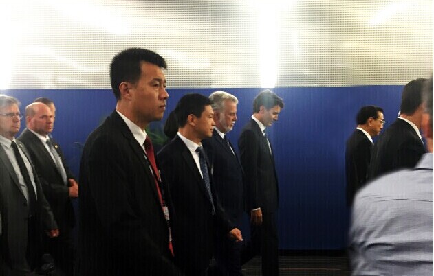 9月23日,李克強總理(前排左一)、加拿大總理特魯多(二排左一)與企業家們(振威展覽董事長張學山,二排左三)一同參加第六屆中國—加拿大經貿合作論壇