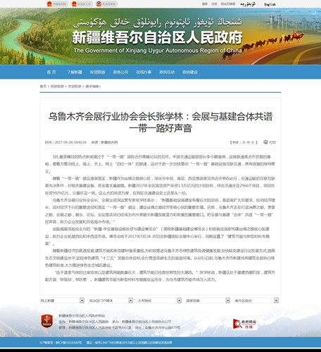 新疆政府網(wǎng)刊文:烏魯木齊會展行業(yè)協(xié)會會長張學林:會展與基建合體共譜一帶一路好聲音