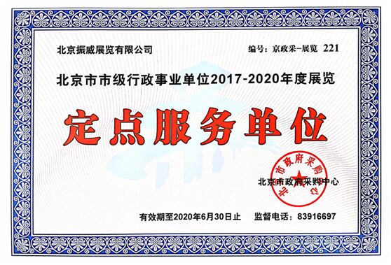 北京振威被評為北京市市級行政事業單位2017-2020年展覽定點服務單位