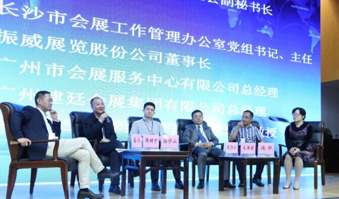 對話沙龍環節在長沙市會展工作管理辦公室黨組書記、主任陳樹中、振威展覽股份董事長張學山、廣州市會展服務中心有限公司總經理歐陽云、廣州建廷會展集團有限公司總經理毛再榮、華南理工大學經濟與貿易學院副院長江金波五位嘉賓中展開,構成了城市、企業、院校3個互動的新模式。對話沙龍環節更讓觀眾與大咖充分互動,展現智慧的碰撞、思想的交流。