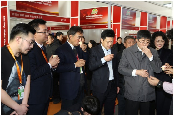 哈爾濱貿促會會長王國文、振威展覽董事長張學山陪同哈爾濱市委副書記、市長孫喆參觀2019哈爾濱進口食品博覽會