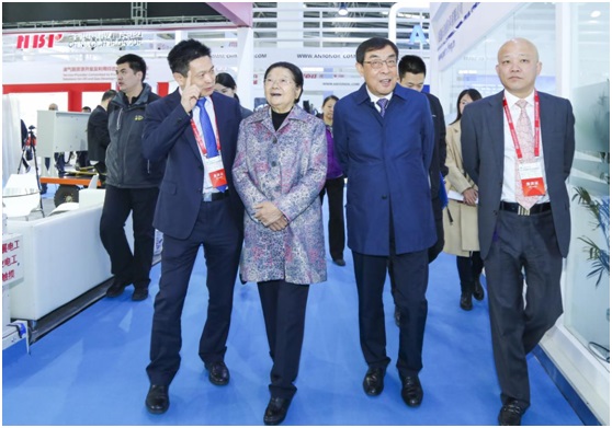 第十屆全國人大常委會副委員長顧秀蓮(左二)、第十二屆全國政協副主席馬培華(右二)在振威展覽股份董事長張學山(左一)陪同下參觀cippe2019