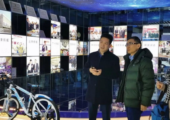 張學(xué)山董事長(右二)陪同王東堂副司長(右三)一行參觀振威展覽展廳