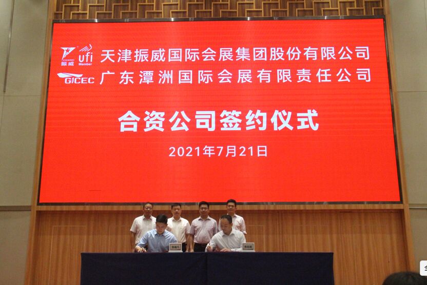 2021年7月21日,天津振威國際會展集團股份有限公司與廣東潭洲國際會展有限責任公司成立合資公司——廣東潭洲振威會展有限公司簽約儀式,在佛山潭洲國際會展中心舉行。佛山中德工業(yè)服務區(qū)(三龍灣)管委會會展局副局長黎浩鋒,振威國際會展集團董事長張學山,振威國際會展集團總裁鄧小輝,廣東潭洲國際會展有限責任公司執(zhí)行董事、總經(jīng)理趙朋輝,振威國際會展集團常務副總裁張超凡等出席活動。
