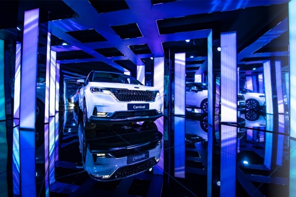 作為一款滿足消費者對美好生活向往和對高品質出行需求的汽車,此次起亞第四代嘉華的首秀希冀以全國巡演的形式,帶來完美的沉浸式觀感體驗,向這個時代宣告著自己的到來。整體設計布局,將創意聚焦在第四代嘉華商務&家用并行的產品特性上,展臺以中心嘉華向兩側延展多種生活的設計概念,為嘉華打造出三個不同場景。這寓意著美好生活將以第四代嘉華為中心,向家庭與商務圈層輻射,延展觸達更多面的高端生活。