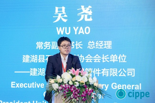 江蘇省建湖縣石油機械協會常務副秘書長 建湖縣鴻達閥門管件有限公司海外事業部總經理吳堯 出席開幕式并致辭